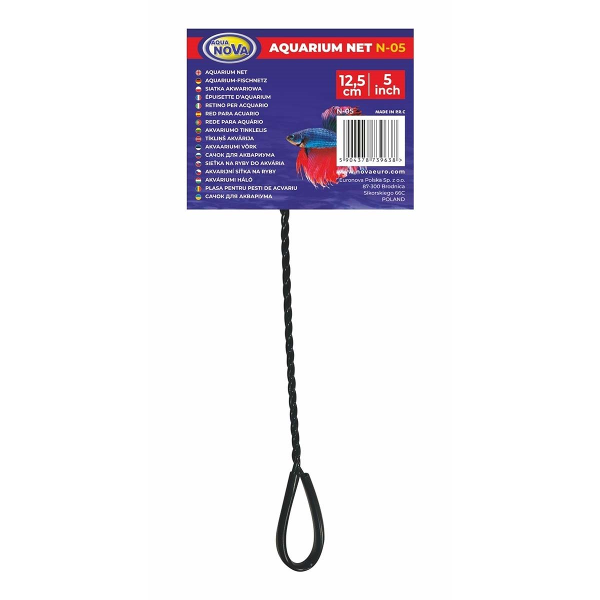 Aqua Nova Grovmaskig Håv 12,5 cm är en håv som används till att fånga fisk eller ta upp grövre partiklar i akvarium. Det grovmaskiga nätet ger lågt motstånd i vattnet och passar vid snabb håvning samt vid borttagning av växtrester och större skräp. Håvens ram är 12,5 x 10 cm och handtaget är 30 cm långt, vilket ger bra räckvidd och kontroll vid skötsel.