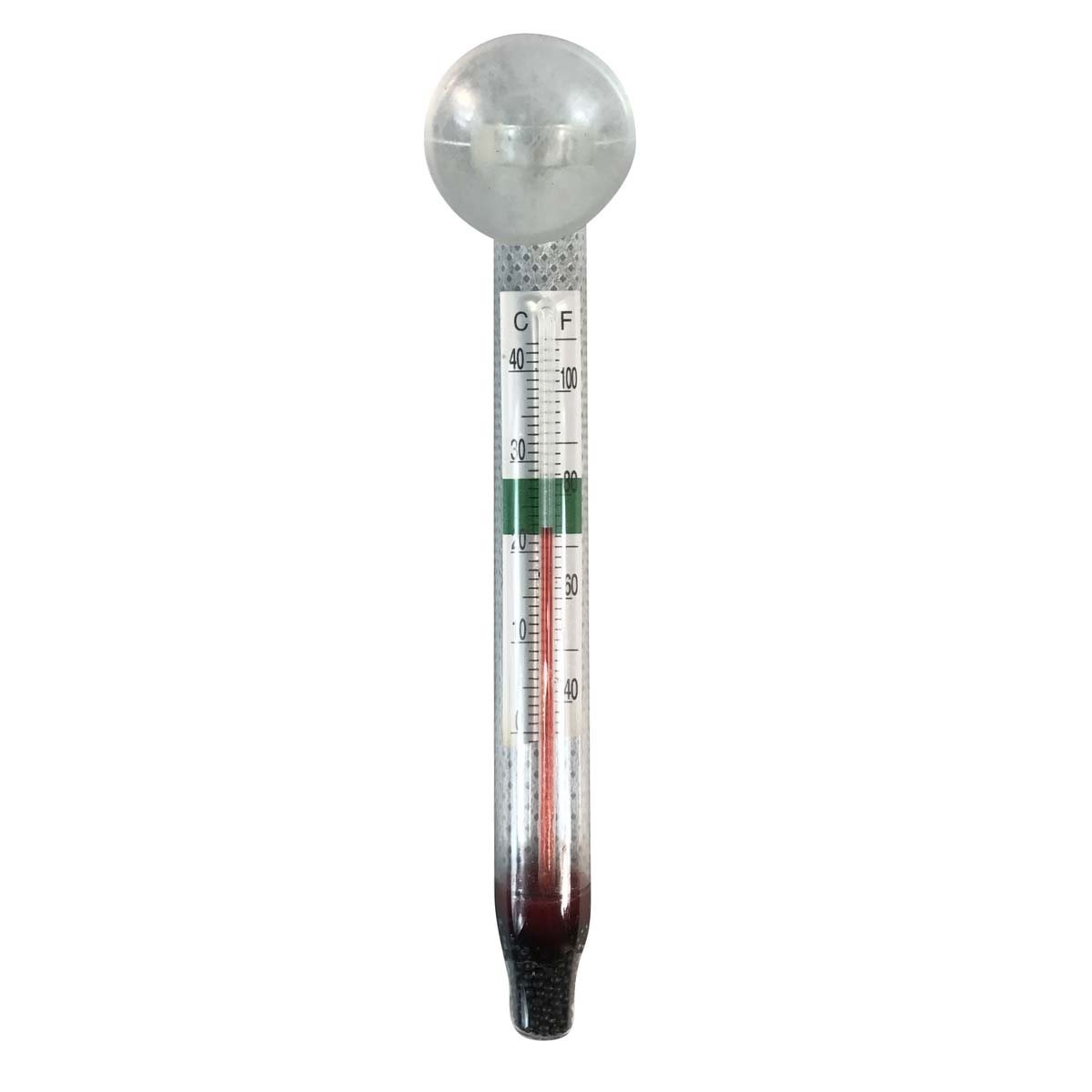 Aqua Nova Akvarietermometer - 110 mm är en akvarietermometer och används för att visa vattentemperaturen i akvarium. Termometern är 11 cm hög och fästs på insidan av akvariet med en sugkopp. Om den lossnar från fästet flyter den upp till ytan.