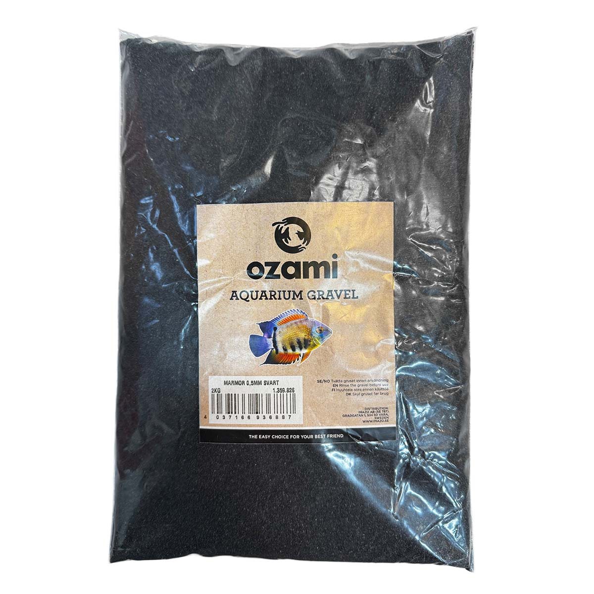 Akvariegrus Marmor - Svart - 0,5 mm - 2 kg är ett mörkt marmorkross som används för att ge akvarium ett mörkt och dämpat utseende. Den fina strukturen på 0,5 mm ger ett jämnt underlag och framhäver fiskar och inredning tydligt. Gruset påverkar inte vattenkvaliteten.