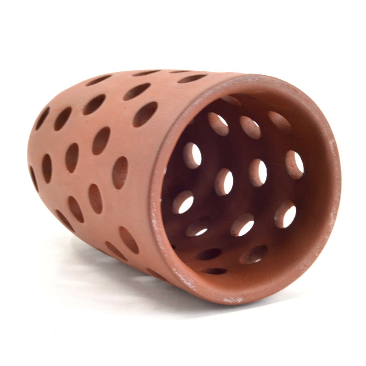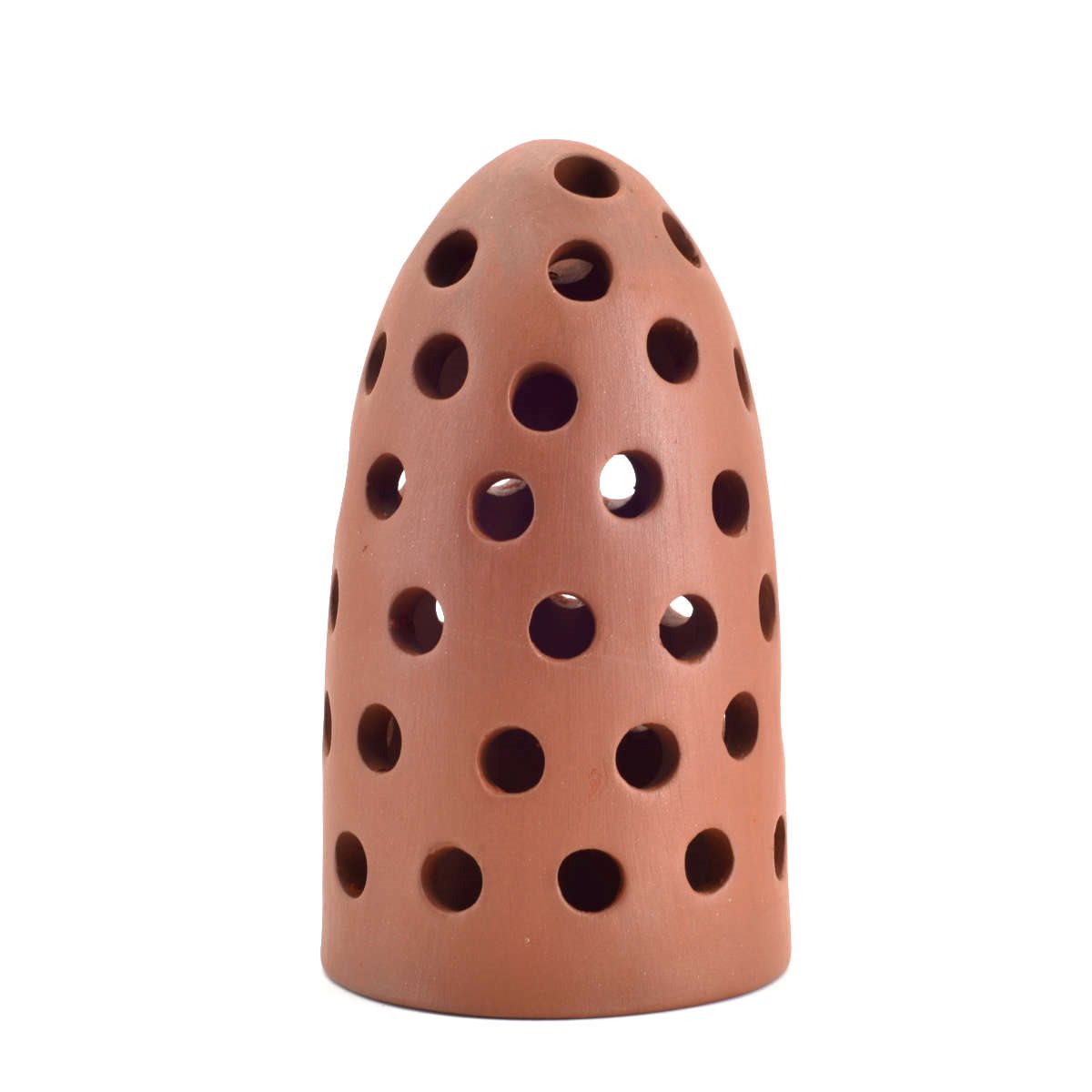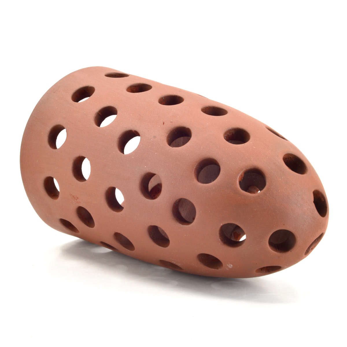 Kon med hål - 16,5 x 9 cm är en akvariedekoration och används som gömställe samt vid lek och avel i akvarium. Den konformade grottan har öppningar som gör att vatten kan cirkulera samtidigt som fiskar kan dra sig undan i ett skyddat utrymme. Den används ofta av bottenlevande fiskar som söker trånga och avskärmade platser. Den kan även användas av räkor.