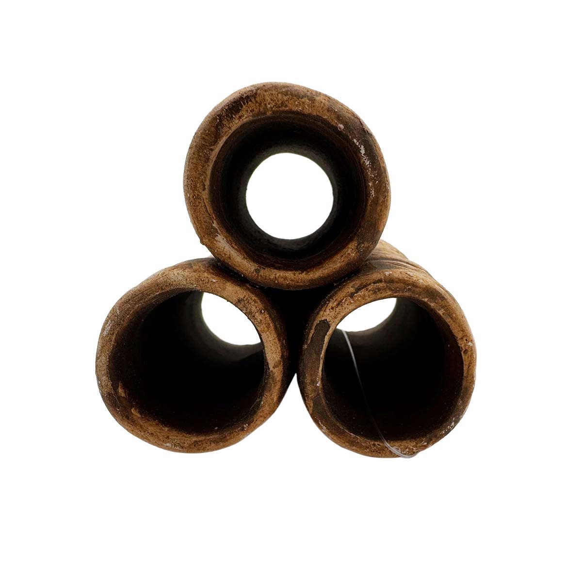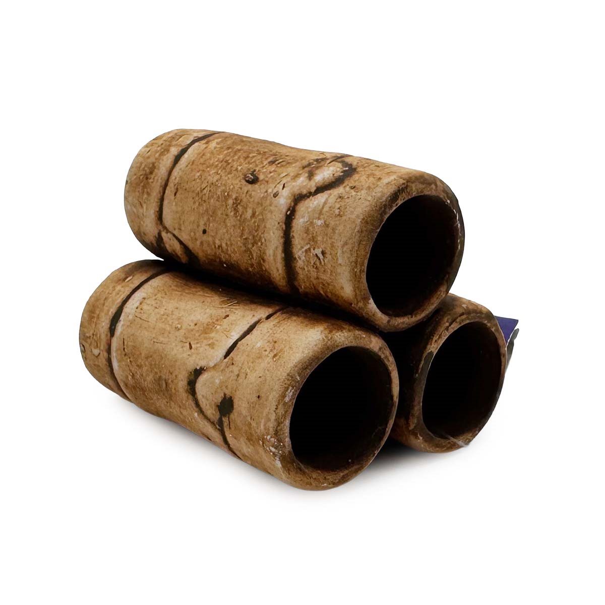Räkgrotta - Tre rör - 7,5x7x6 cm är en akvariedekoration som används som gömställe för räkor och andra mindre bottenlevande djur. De tre sammanfogade rören ger flera separata skyddade utrymmen där djuren kan dra sig tillbaka, vila och känna sig trygga.