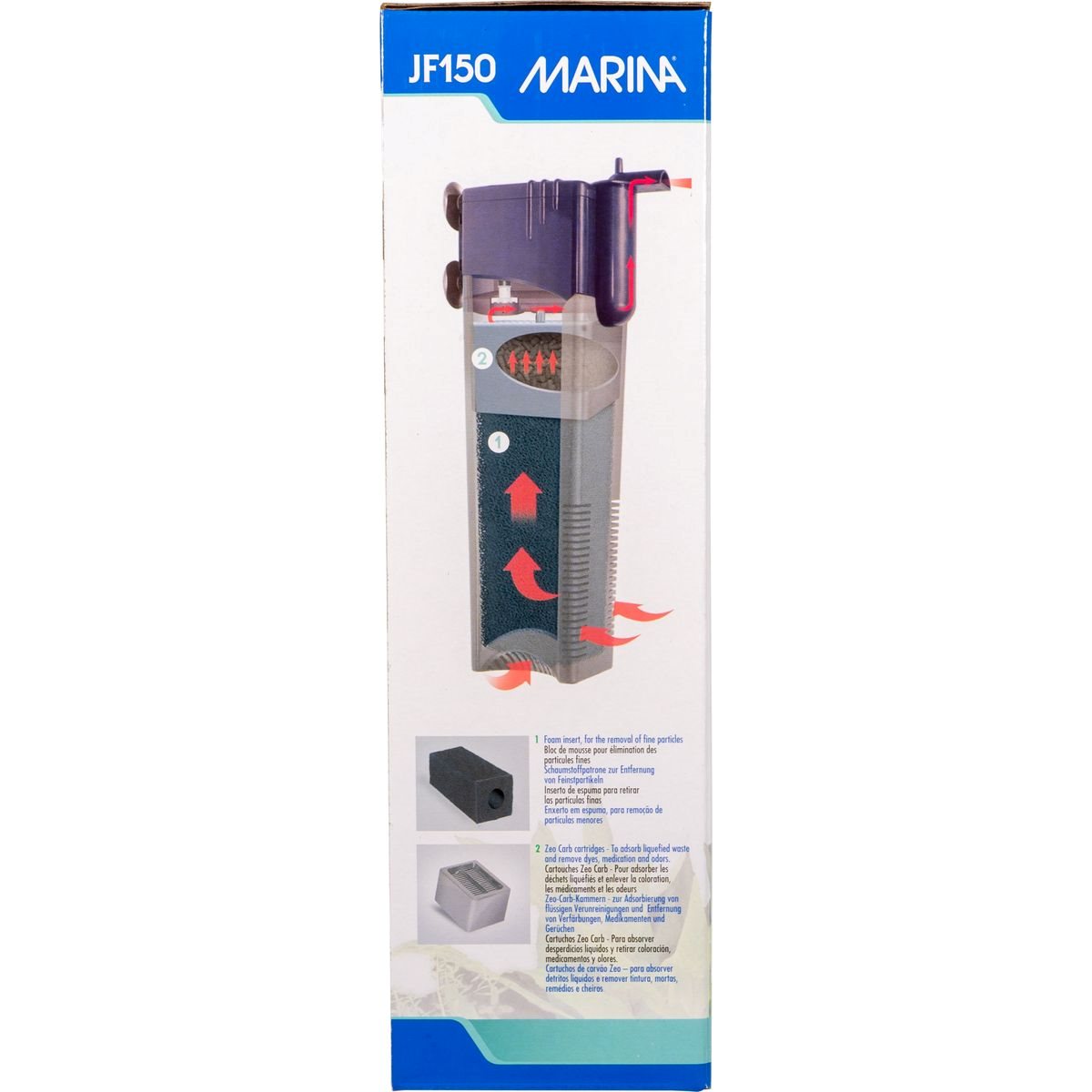 Marina Jet-Flo 150 är ett innerfilter som används för att ge mekanisk och biologisk filtrering i akvarium. Det är avsett för akvarium mellan 100-150 liter. Filtret är enkelt att installera och levereras komplett med filtermedia och strilrör, vilket gör det klart att användas direkt. Utblåset kan roteras 90° för att styra vattenflödet.